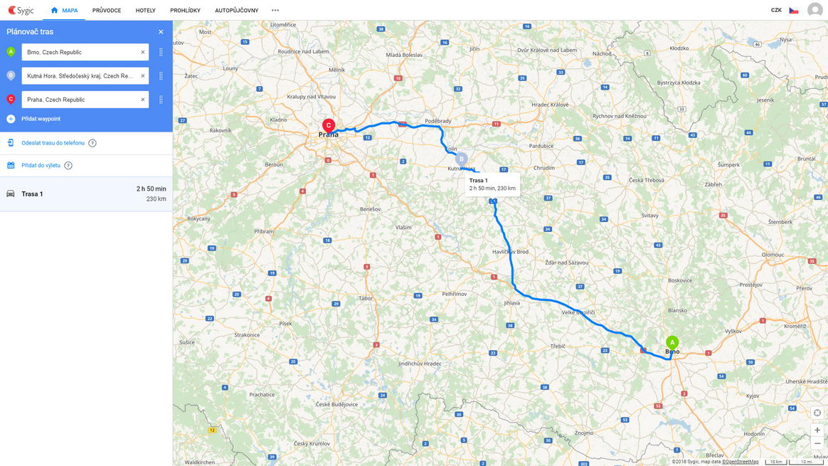 Pomocí integrované funkce plánovače je možné si předem připravit kompletní itinerář nebo uložit si zajímavá místa na později.